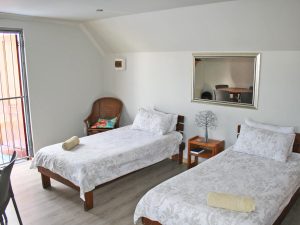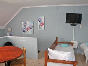 This downstairs studio is ideal for couples or business travellers, offering two single beds. It comes with a convenient kitchenette, a TV, and Wi-Fi. The bathroom includes a shower; there is a garden view with Braai/BBQ facilities.