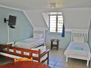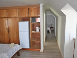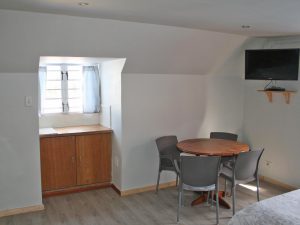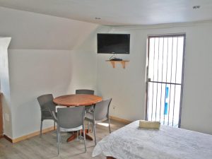 This upstairs studio features a cosy double bed and two single beds, making it perfect for families or small groups. The studio includes a kitchenette for your convenience, along with a TV and Wi-Fi, and the bathroom has a shower.